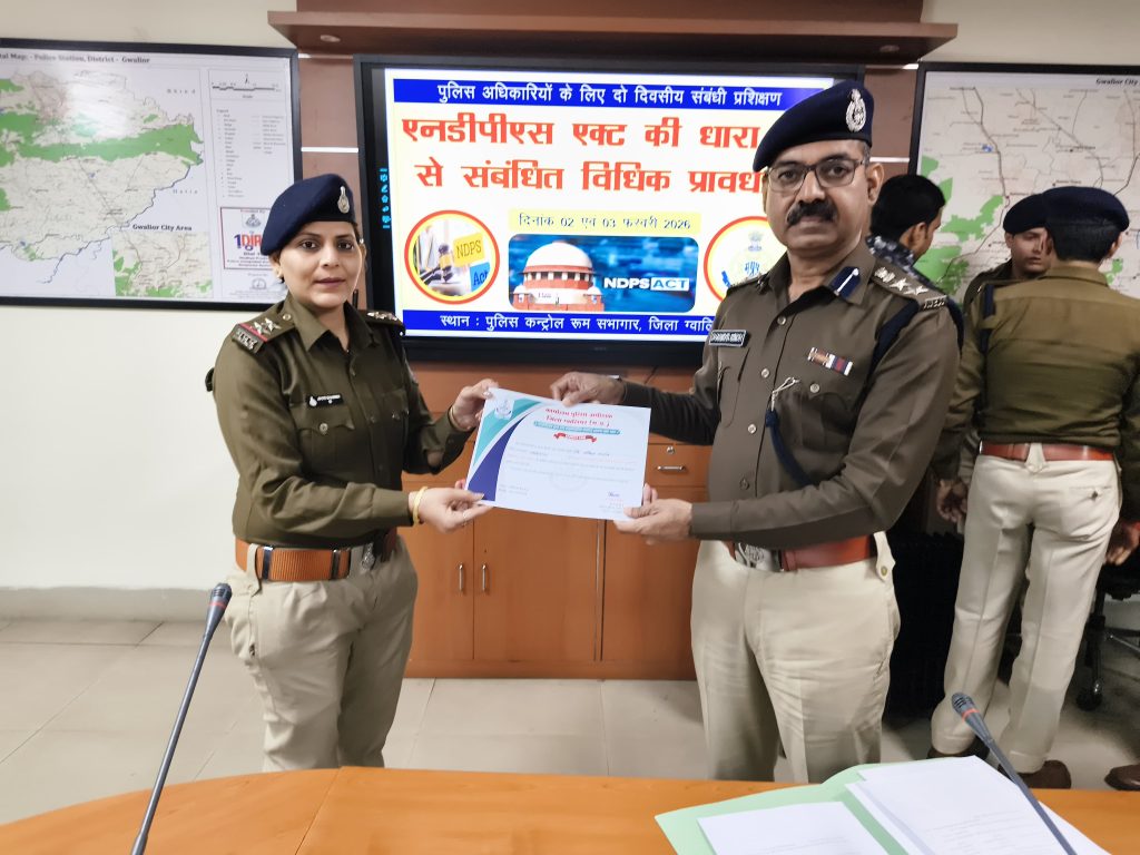 एनडीपीएस एक्ट के अपराधों में विवेचना का स्तर उत्कृष्ट करने के लिये ग्वालियर जिले के पुलिस अधिकारियों के लिए दो दिवसीय कार्यशाला